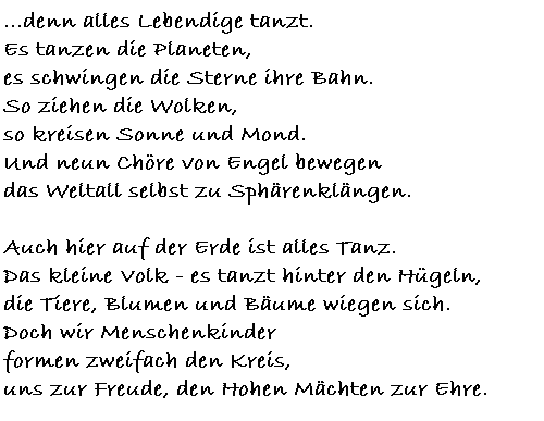 Versimprovisation zum Kreistanz, aus "Kreistanz", der Webseite für alle, die den Kreistanz schätzen und Material und Seminare zum Kreistanz suchen Tuja Heller - Atelier für Meditativen Tanz und kreative Ausdrucksformen